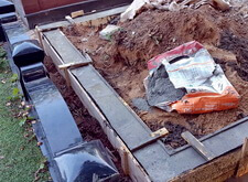 Заливаем собранную конструкцию бетоном, в результате чего получаем добротное основание, которое, благодаря двухметровым сваям, в дальнейшем уже никуда не поедет и не исказится иным образом.