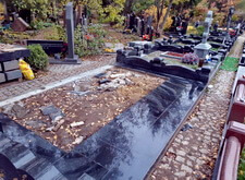 После того, как работа была проведена, клиент посчитал, что в задней части места захоронения требуется дополнительное укрепление. Мы вкрутили пять дополнительных свай, сварили новую сетку и залили ещё одну площадку, которая будет являться основанием для памятников.
